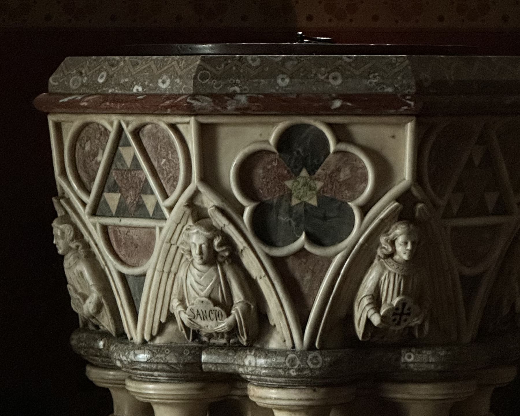 If science has nothing to do with you, I answer that it is then barely even science, if by science we mean that which is worthy to know. I even know of one church, Lord, built in Darwin’s lifetime, where the fossils that he wondered about, and which I hold in my hand, are built into the baptismal font. At All Saints, Margaret Street, in London, there is the coral, which joins with the choral praise that sings so sweetly of your beauty, so anciently new.