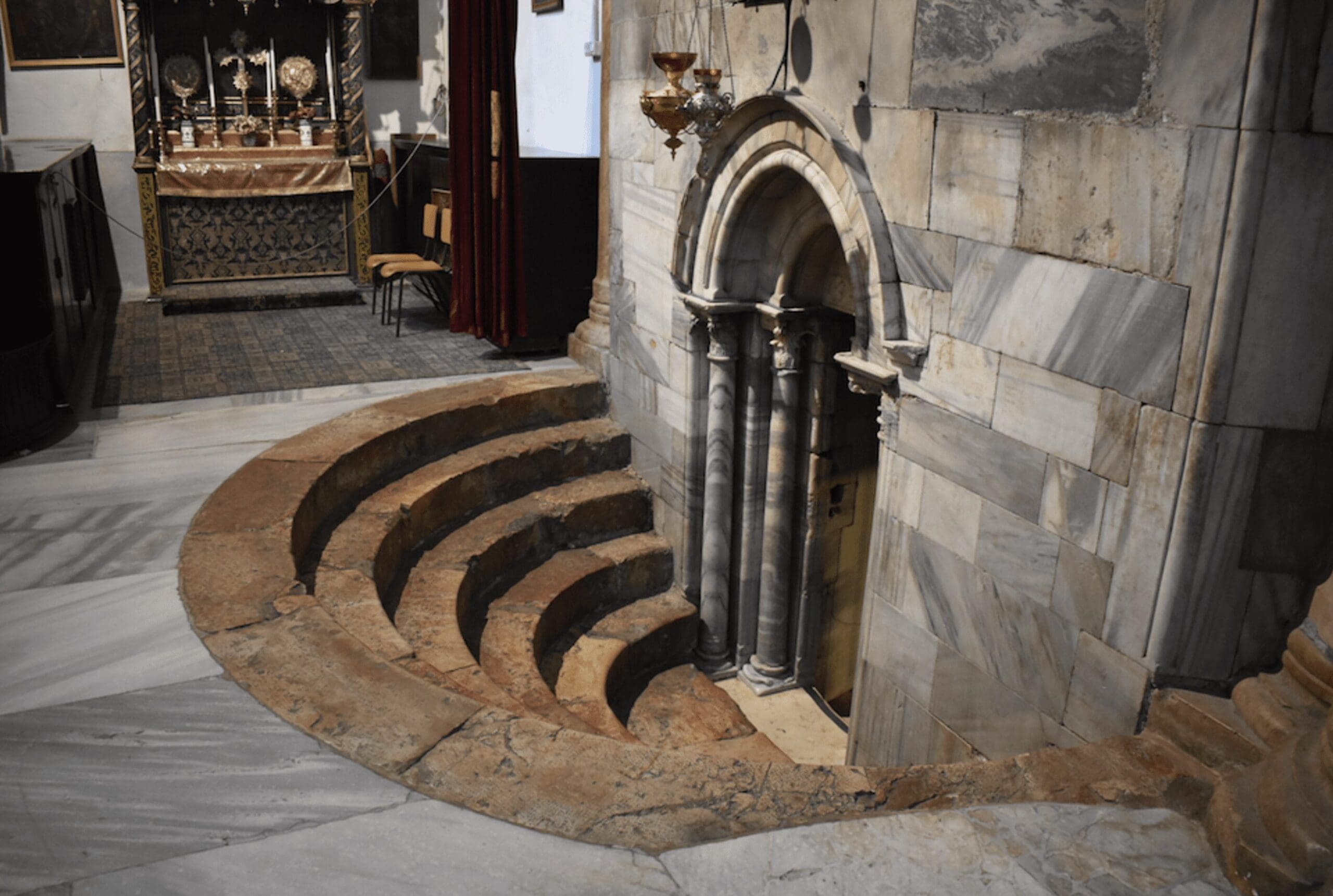 Entrance to the grotto of the Nativity in Bethlehem.